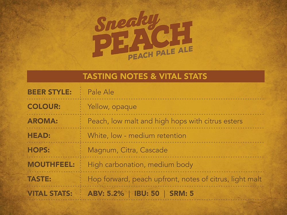 Put there by a man in a factory downtown, Sneaky Peach Pale is a big nose smooth finishing Ale – deliciously delectable and deceivingly drinkable. Did you know? Peaches are symbols of immortality (don’t mistake Sneaky for a Geldof, and definitely not ‘and Herb’); and super tasty in beer. Similar to the Mackinaw, Sneaky Peach is akin to ‘having a circus in your mouth’ and a little like being in a pie eating contest – to be experienced. Its peachy-keen!! (fruity/peachy/hoppy). Warning: Sneaky Peach may make you want to movin’ to the country…
